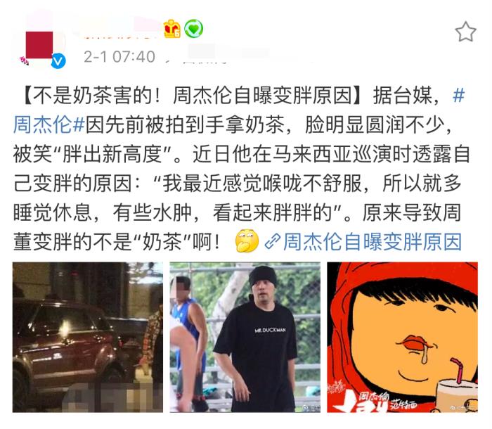 不少粉丝就猜测,周杰伦这么胖的原因就是因为喝太多的奶茶。