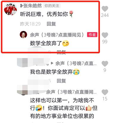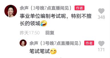 发出视频后,余声也在第一时间解答了网友们的疑惑,称自己所考的是事业单位编制考试的笔试。