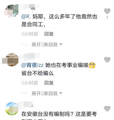 还有不少人直言:“这么多年了,她竟然还是合同工”,“电视台不给编制么?”