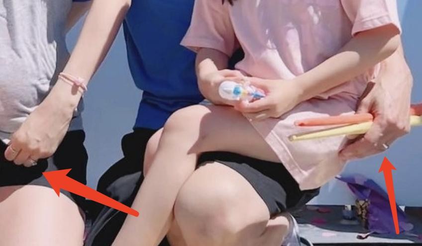 夫妻俩的手上都戴着结婚钻戒,尽显恩爱。