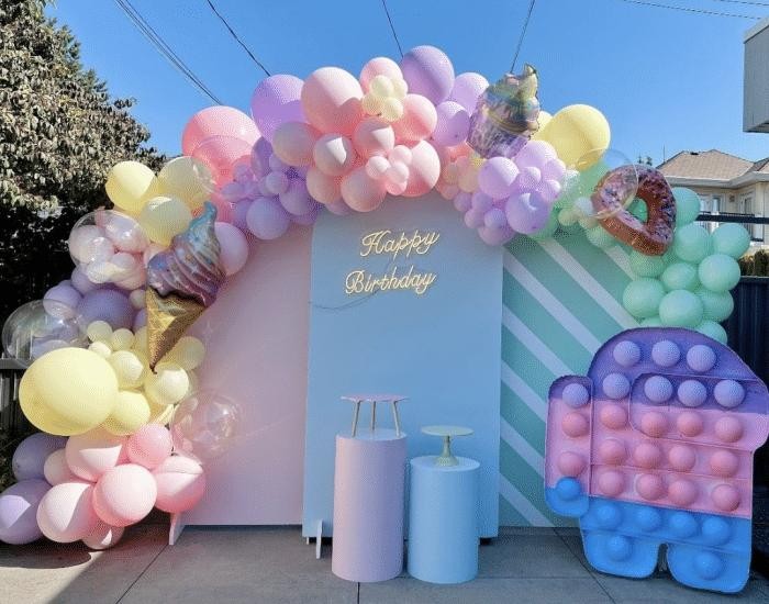 其实拍照现场也是姐弟俩的生日派对现场。