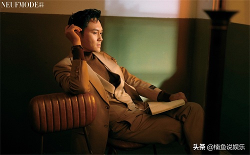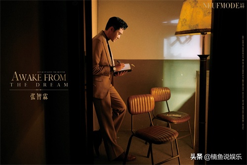 换上棕色西装之后,张智霖靠在椅子上,一手握着记录本,一手握着笔,像是在写一本独属于自己的出道回忆录,若有所思,尽显绅士风度。