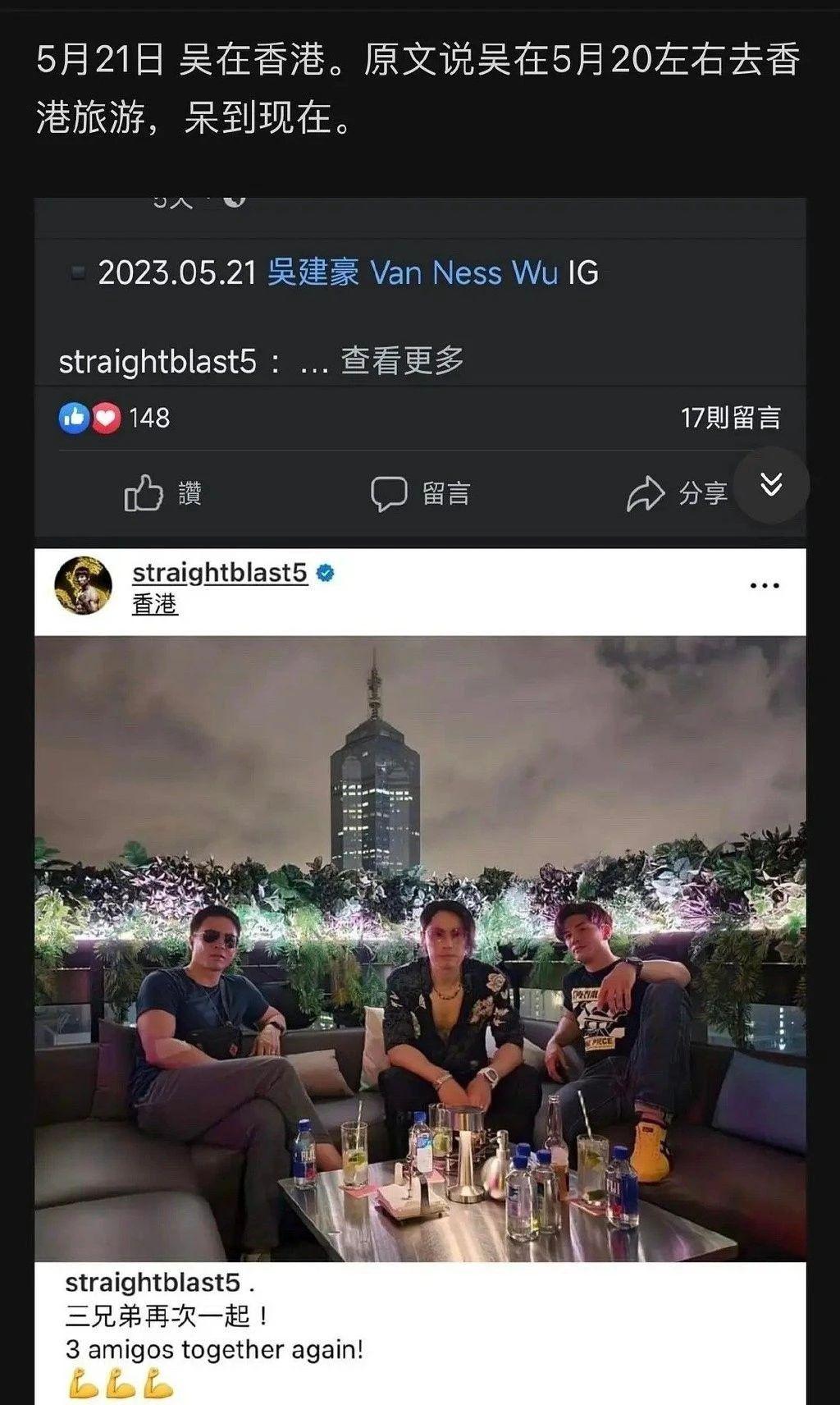 5 月 20、21 日,吴建豪晒出的照片 ip 在香港,