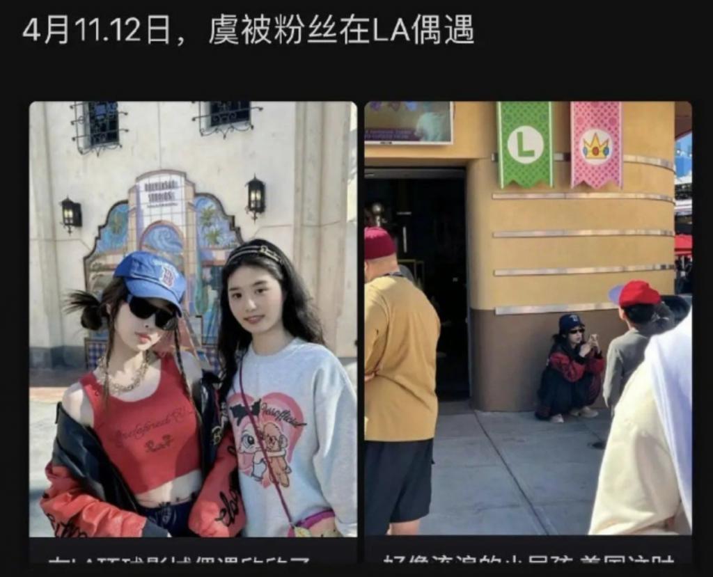 两人行程相撞最早是今年的 4 月 11、12 号,有网友在洛杉矶偶遇了虞书欣,