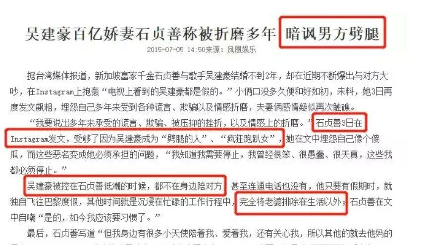 结果婚内不老实,石贞善暗讽吴建豪不仅劈腿,