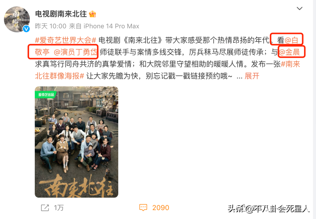 除了《平凡之路》,金晨最近还有一部新剧杀青,那就是白敬亭主演的《南来北往》,金晨在剧中担任女主角。