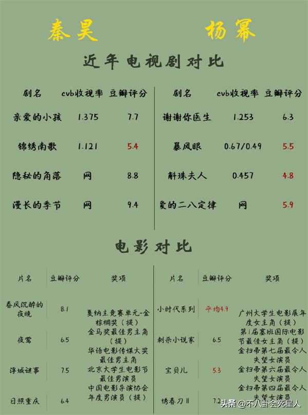 秦昊的演技、作品都要远远优于杨幂,理应排在前面。