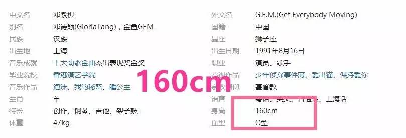 就说邓紫棋吧,本身不是很高,官方的身高是160cm,虽说可能存在一点水分,但也是顶多虚报的个两三厘米而已。