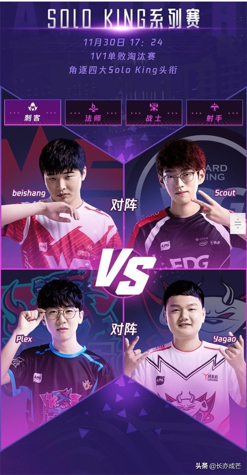 赛程方面,11月30日将举行年度颁奖盛典和LPL Solo King的比赛。Solo King采用嚎哭深渊地图1对1,来自16支战队的16名代表选手将角逐战士、法师、刺客、射手四大Solo King头衔。