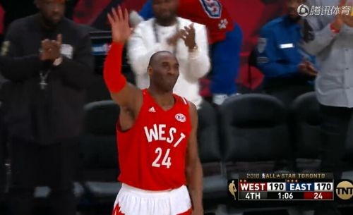2016NBA全明星赛第四节末段,科比下场向全场挥手致意,告别自己最后一届NBA全明星的舞台。