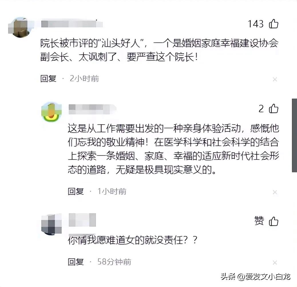 出轨人妻的男子是汕头某医院的院长,这位院长可不得了,年纪轻轻就拥有了“汕头好人”的头衔,可以说是位高权重,年少有为了。