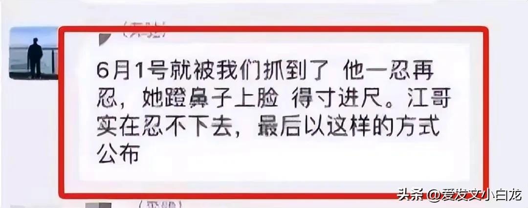 在这期间江先生考虑到了孩子,给了妻子无数次机会协商离婚,然而她却固执己见。对此,江先生非常愤怒,一气之下将妻子出轨的信息发到了朋友圈,让更多的人了解到了此次事件。