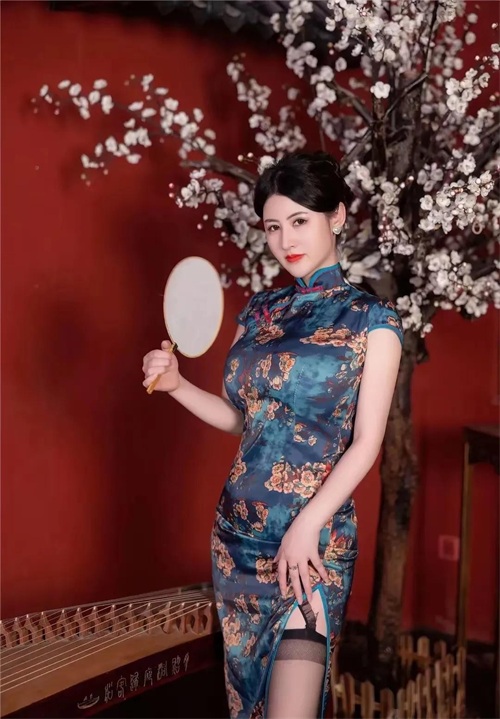 她的身姿曼妙,旗袍的剪裁恰到好处地勾勒出她曼妙的曲线,让人无法移开视线。那高开衩的设计,更是巧妙地展现了她修长的双腿,增添了几分性感与神秘。她的步伐轻盈,每一步都仿佛在诉说着一个动人的故事,让人沉醉其中,无法自拔。
