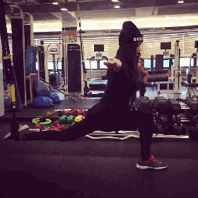 平时她也会进行各种自重训练,比如: