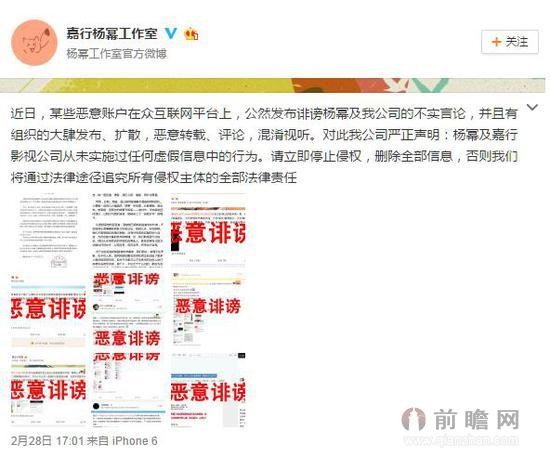 近段时间杨幂与刘恺威离婚的新闻成了“月经贴”,时不时就大范围爆料杨幂劈腿李易峰,与刘恺威离婚的消息,不少网友认为是杨幂炒作,但是杨幂最近没有新作品上映,也不用如此给自己刷存在感吧。2月28日杨幂工作室发布律师函,否认炒作离婚等事件,并在微博截图中打出了红色“恶意诽谤”字样,大幂幂对于此事也是满满的血红色的愤怒呢。然而网友也不是吃素的,被杨幂工作室挂出来的微博账号没有删帖,而是模仿杨幂工作室声明格式除了一篇新微博辟谣。看来咱们网瘾少妇大幂幂真的和网友们撕起来了呢,这回谁会获胜呢?