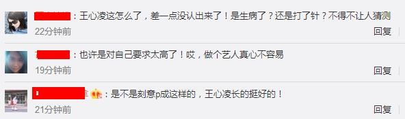 也有网友表示,王心凌遭遇了什么,差一点就没认出来,是因为生病还是因为打了针?看到这一幕,有网友表示,也许是她对自己的要求太高了,现在的娱乐圈不是那么好混的,最好的时光就那么几年,做个艺人也是不容易的。