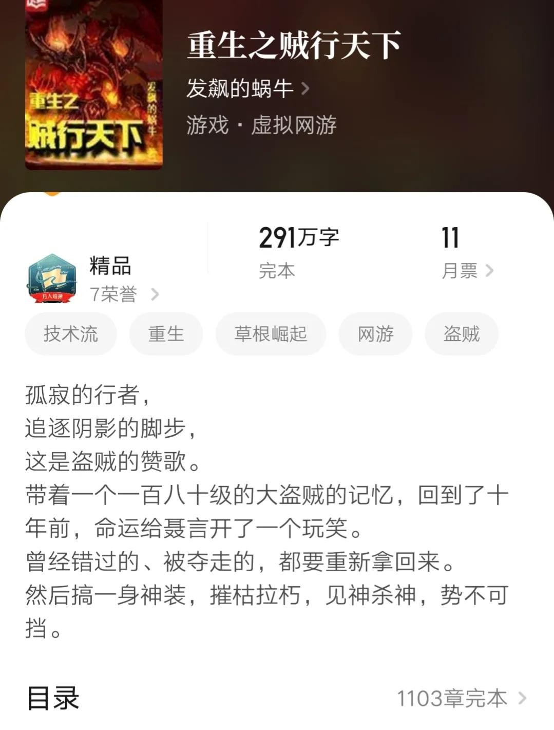 发飙的蜗牛这本《网游之贼行天下》,和与他几乎同期的《全职高手》在当时算是现象级作品,算是网游承前启后之作。