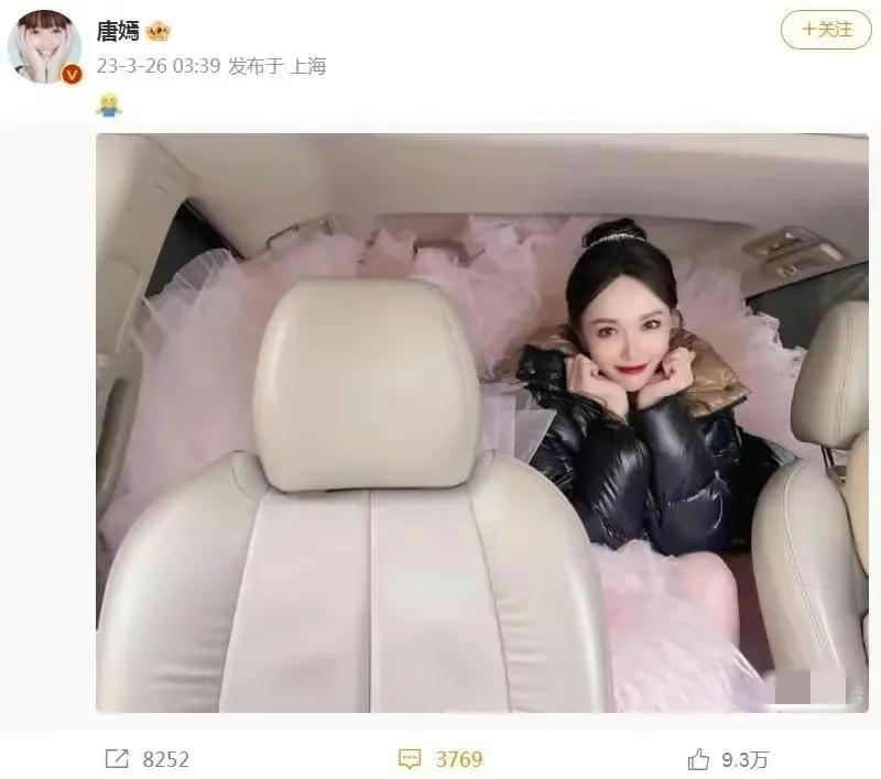 除了这件事外,唐嫣被主办方拒之门外之后就在凌晨三点发布了一张自己坐在跑车后面的图片,图片中的唐嫣身穿高定礼服很显然是为了这次的微博之夜准备的,并且还配了一个抱抱的表情求安慰。
