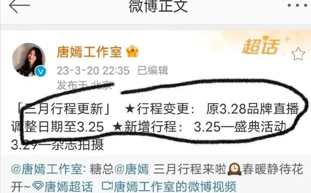 事情的起因是唐嫣团队除了参加微博之夜的活动,还接了一个品牌方直播的带货,原本接待货也是再正常不过的事情了但问题就出在时间上,微博之夜活动开始是七点钟,但是网友们发现她七点半竟然还在抖音上直播。