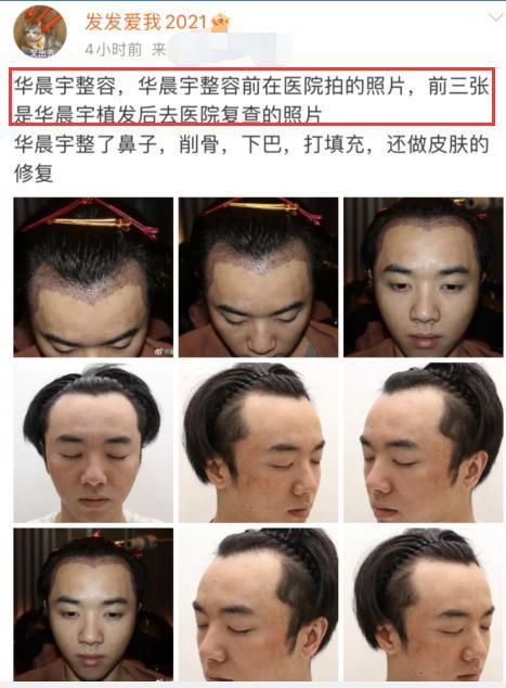 为了证明华晨宇植发前比较秃,她还晒出了九宫格照片,像极了医生在手术前为患者制定方案时的照片。
