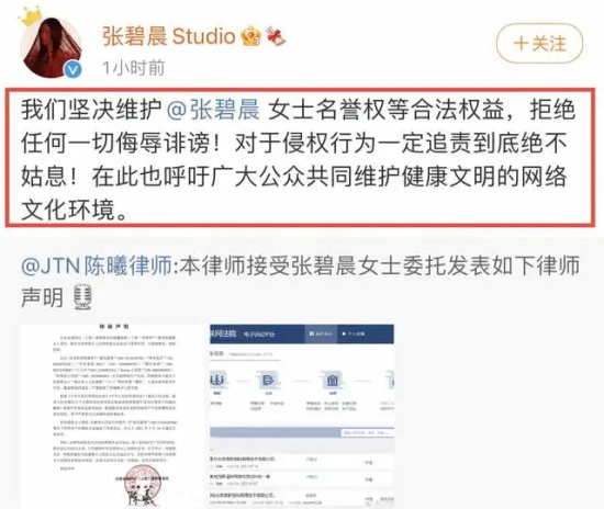 随后张碧晨也发了声明,否认自己是小三的传闻。