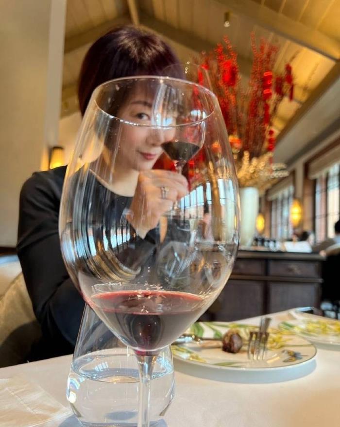 何珈好梳着齐耳短发,身材窈窕尖下巴抢镜,逆生长如同少女。她穿着黑色连衣裙,气质大方优雅,举着红酒杯姿态端庄,手上的钻石婚戒闪闪发光,拥有着超高的颜值和绝佳的气质,一看就是生活在幸福之中的女人。