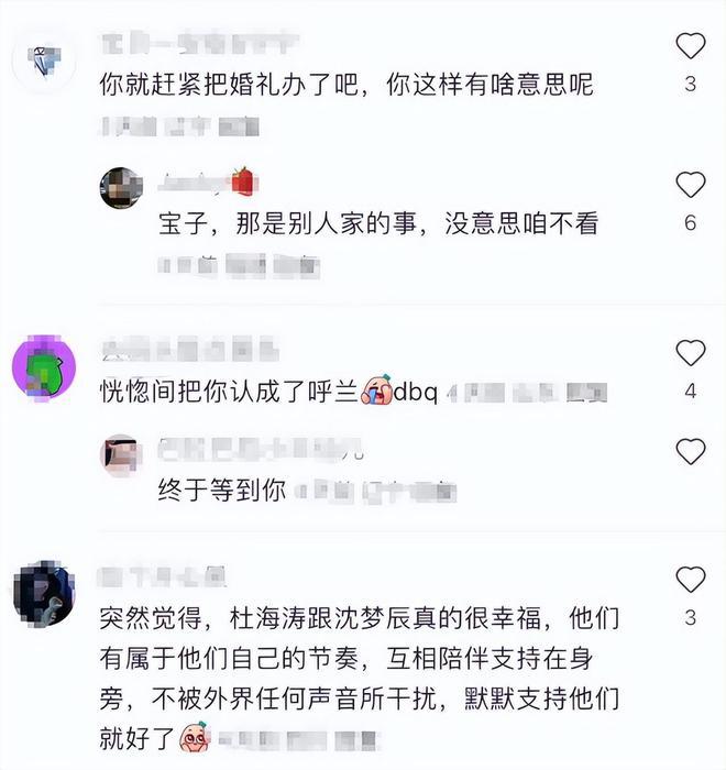 很多人都知道,海涛和沈梦辰经过 9 年恋爱长跑,22 年 2 月才晒证宣布结婚。而且,因为婚后一直没有办婚礼,以至于不少网友还不知道两个人已经结婚,为此,每每他们分享一些恩爱日常,都会有网友催他们赶紧把婚礼办了。