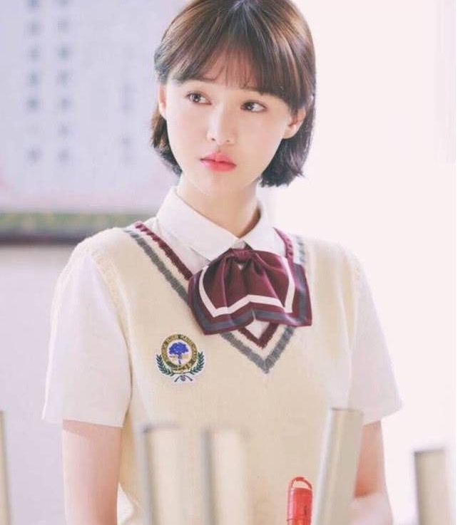 图三郑爽的短发显得气质清澈灵动,她的齐耳短发乖巧又可爱,加上精致的五官和高挑清瘦的身材,就像是一个十七岁的小少女。看到她就刚好像是看到了我们学生时代暗恋的学校校花,让人赞叹。