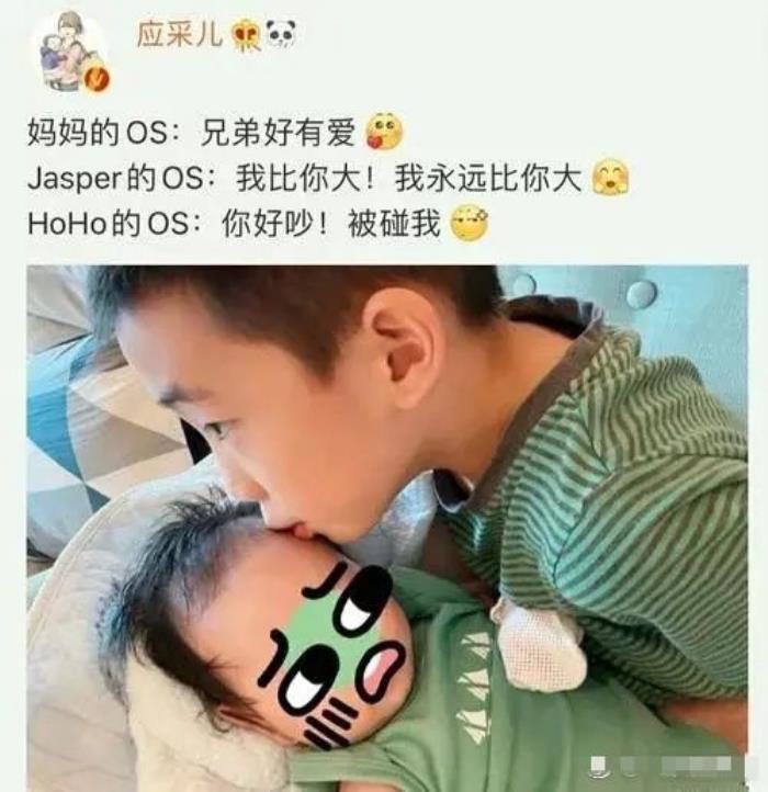 从此一家三口变成了一家四口。Jasper也是很有大哥哥担当的,应采儿分享了一张Jasper亲吻弟弟额头的照片,十分有爱,并且在节目中,Jasper也是一直想着照顾弟弟,真真是一个很好的大哥哥了!