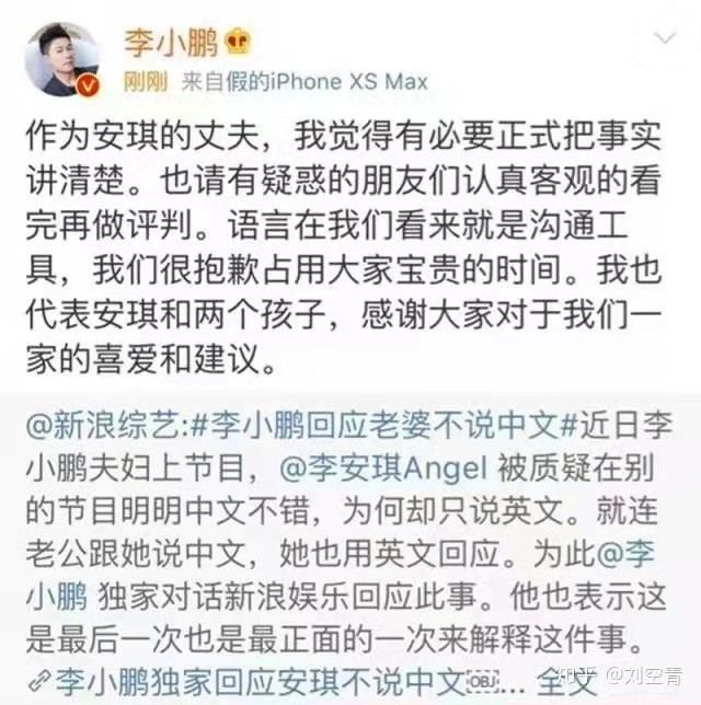 网络的骂声不断,李小鹏参加节目时,经常被问道为什么妻子不讲中文?李小鹏每次都不得不回应。