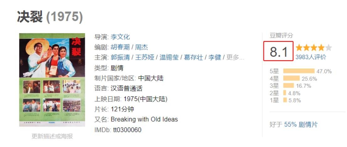 一个是没想到它的豆瓣评分,竟然是8.1分。