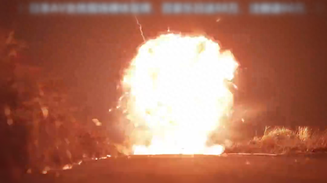 汽车像箭一样向前飞驰, 随着一声巨响,腾起一阵烟火。