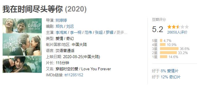 目前,《我在时间尽头等你》正在热映中,票房与热度持续高涨,然而影片的口碑却有些低于预期,豆瓣评分仅有5.2分,网友们对影片的评价也是两极分化。