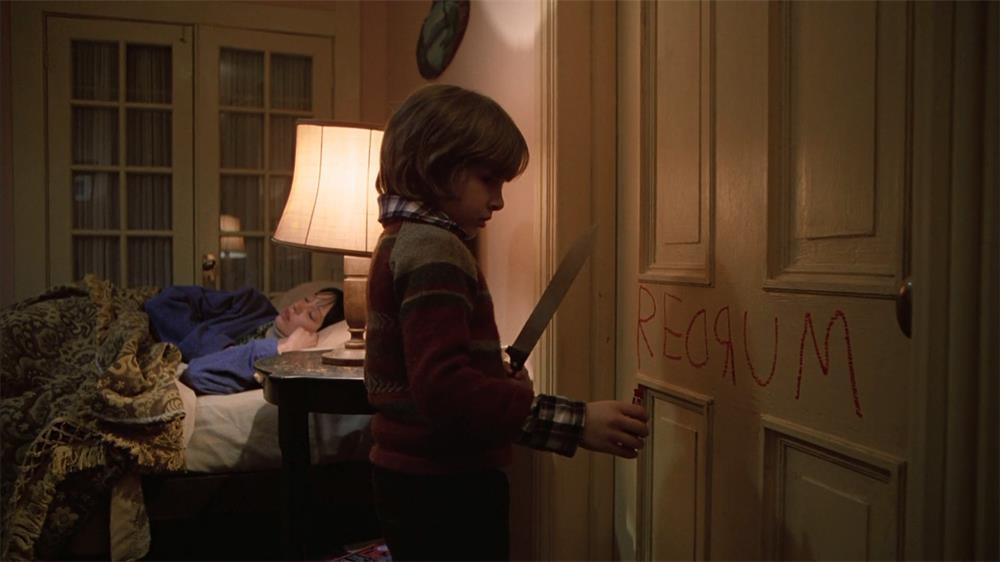 影版中,库布里克也保留了倒写“murder”的设定,但与小说中多次点明相比,片中写在门后需要借助镜子才能发现的伏笔,就格外需要观众的火眼金睛。