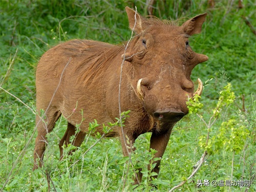 真实的疣猪也有长而弯曲的獠牙,虽然体型不算太大,但横冲直撞起来也不是好惹的角色。