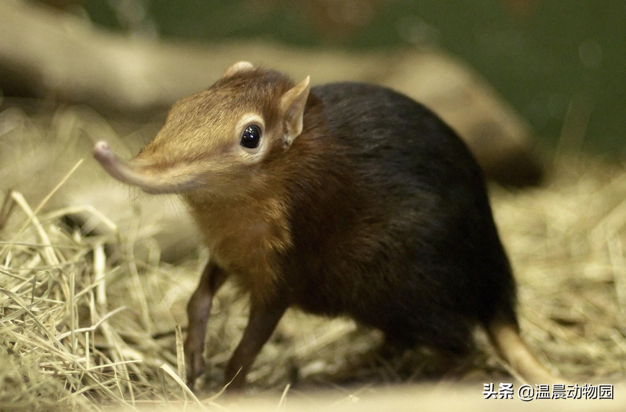 其中有一只长得像老鼠的小家伙儿,有一根长长的鼻子,身体前半段呈黄棕色,后背则是黑色,走路像踮着脚,喜欢耸着鼻尖东嗅西嗅。很多人以为它是老鼠,其实并不是。