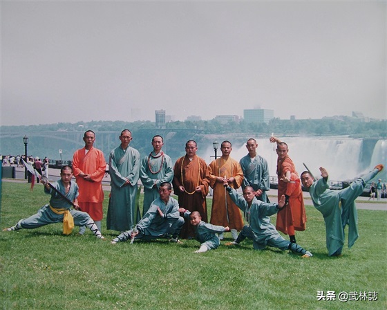 原来,武警总部到学校挑选教练时相中了释延武,他成了武警总部的特邀教官,负责特警和军校学员的套路和散打技能的教授。同时,释延武还跟随少林武僧团一起弘扬少林功夫,第一站在郑州黄河游览区,第二站到了广东石龙镇,后来再到海南,然后又走出了国门。