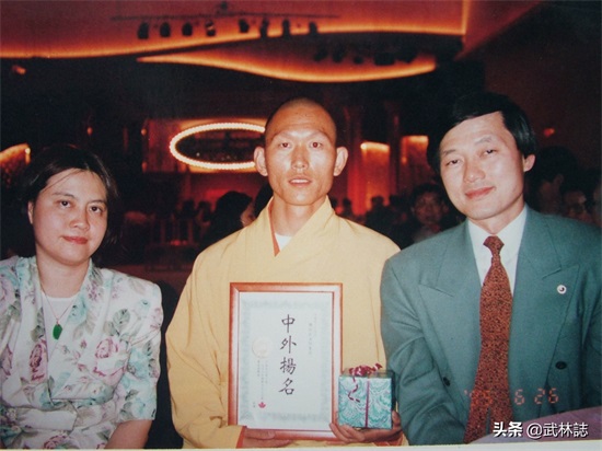 说起释延武最拿手的武学绝技,当属“铁裆功”。1995年,释延武的“铁裆功”获得世界最高功夫奖,载入《世界名人录》和世界功夫吉尼斯纪录。