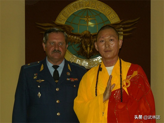释延武师父赴俄罗斯慰问“和平-2007军事演习”各国官兵时与上合组织军演总指挥
