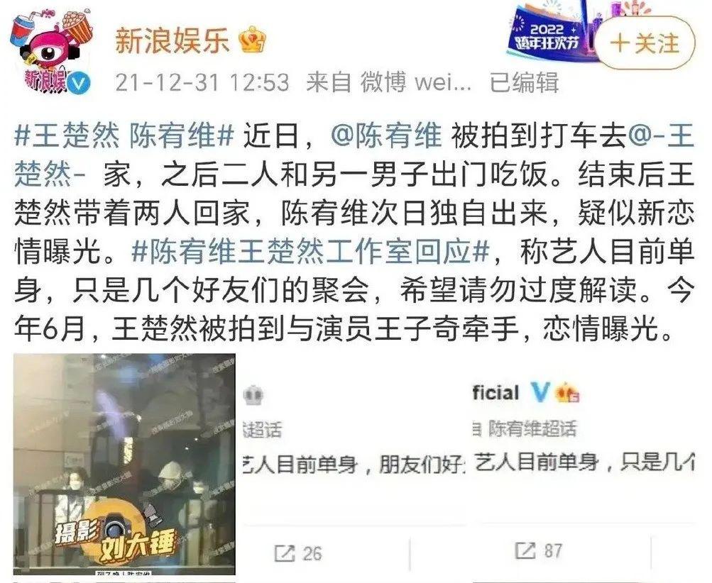 后来又和陈宥维聚餐被拍,工作室火速站出来辟谣。