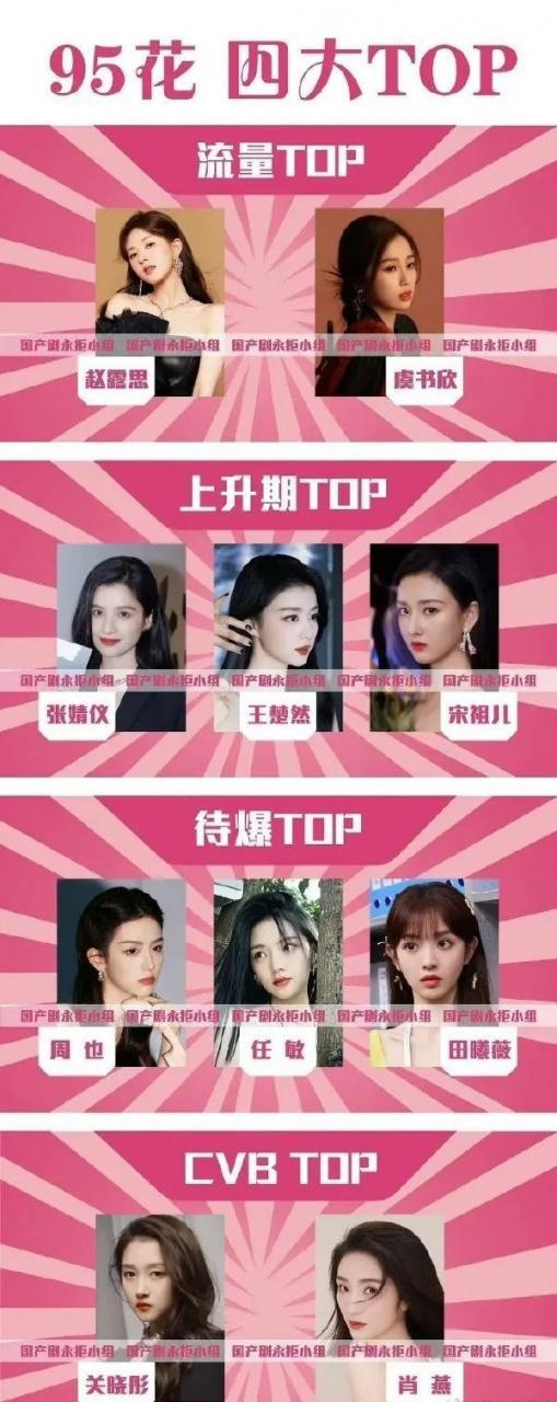 娱乐圈女星的换代速度越来越快,95 花逐渐上主桌吃饭,最近的热播剧《偷偷藏不住》《玉骨遥》《我的人间烟火》《当我飞奔向你》全由 95 花担主。