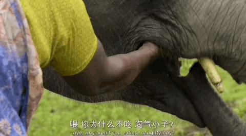 他们日常给小象喂奶,投食,打扫房间,洗澡。