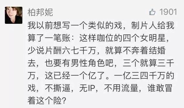 大家本能地都不愿意冒着风险去选择这些 " 演技好 " 却 " 没有流量 " 的女演员。