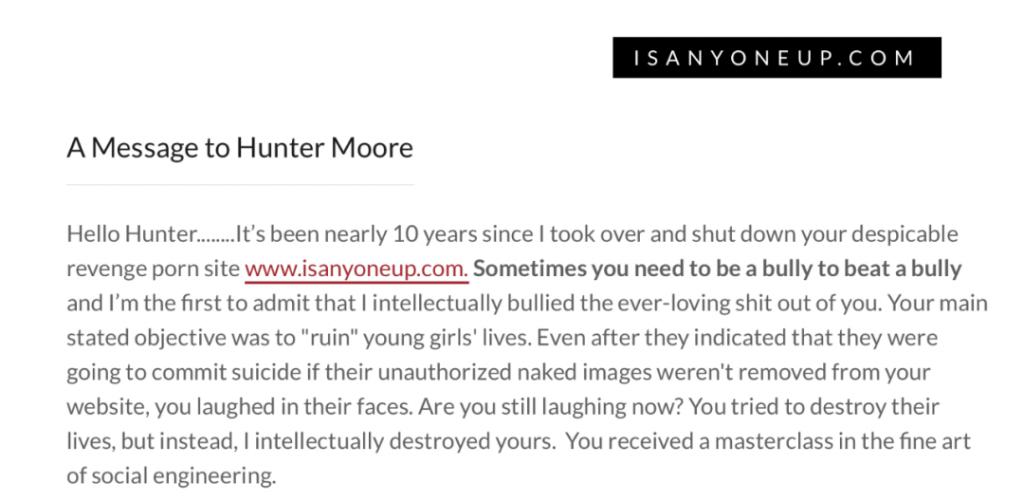 自己的私密照,被挂在了色情网站 "Is Anyone Up"(可中译为 " 睡 nmb 起来嗨 ")上。