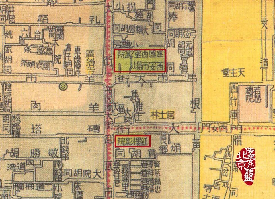 《最新北平大地图(解放版)》中西安市场北部的影院名为建国西堂影院,看位置应该就是后来的胜利电影院。