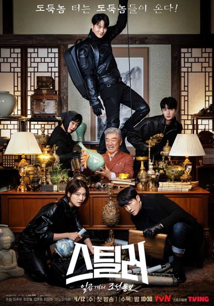 《盗贼:七个朝鲜通宝》为韩国tvN于2023年4月12日起播出的动作喜剧,剧情讲述一名蒙着神秘面纱的盗贼「臭鼬」专门向非法购买文化财产的社会高层下手偷窃,而男主角黄大明(周元饰演)原本是一名对于工作没有任何抱负和热情的文物厅公务员,不过却因为被怀疑与盗贼「臭鼬」有隐密联系,他的日常生活开始发生巨大转变,更是加入了以抓住「臭鼬」为目标的团队「Karma」,将一起携手惩治法律无法审判的人!本剧也是男主角周元自2020年主演韩剧《Alice》后,时隔两年半再次主演的新作品,因此粉丝也相当期待周元在这部作品里的表现!