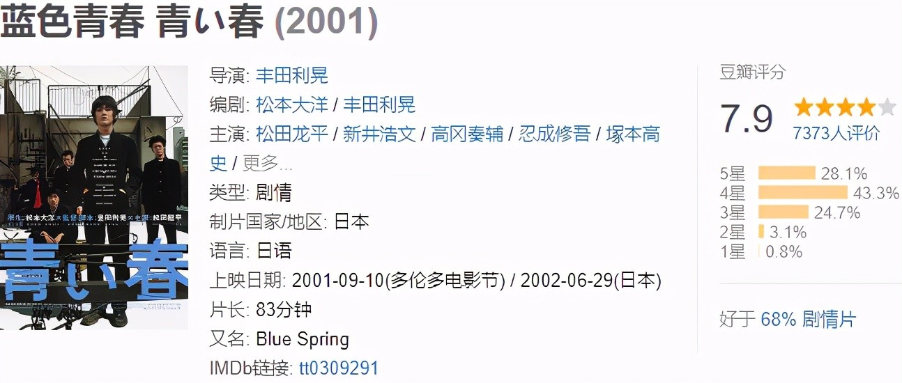 《蓝色青春》青春风格之浓郁、视觉冲击之强烈、内涵之深刻、氛围之颓唐,具有其独特的暴力美学和黑色幽默风格,是日本青春电影中不可多得的上乘之作。