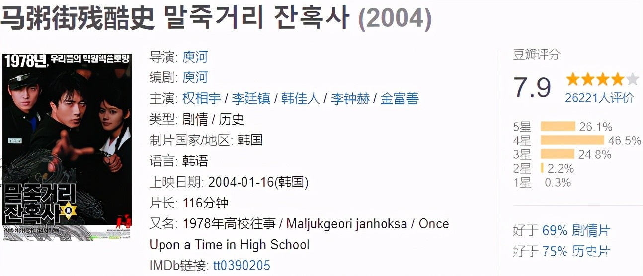 《马粥街残酷史》就是一部向李小龙致敬的韩国电影,有着浓厚的李小龙情怀,电影中少年在电影院里看李小龙的镜头非常具有旧日情怀,一群喜爱李小龙的韩国少年的故事虽然残酷,却因李小龙而显得亲切,片尾的双截棍大战也非常精彩。