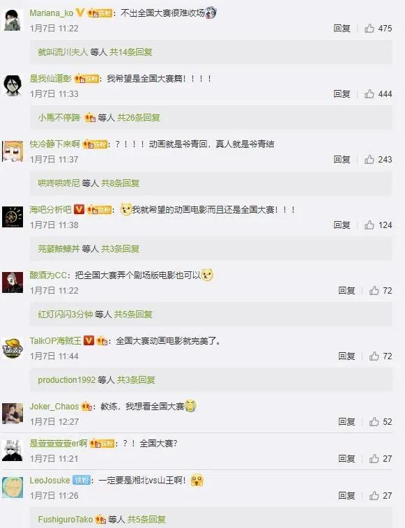不少人猜测,这部分成熟的分镜甚至能够被电影直接使用,因而制作这部分剧情的可能性极大。就连粉丝也高喊:“一定要是“湘北VS山王”。不过,也有网友猜测,若是以全国篇为内容,很大几率会同《EVA》电影一样以三部曲的形式出现。