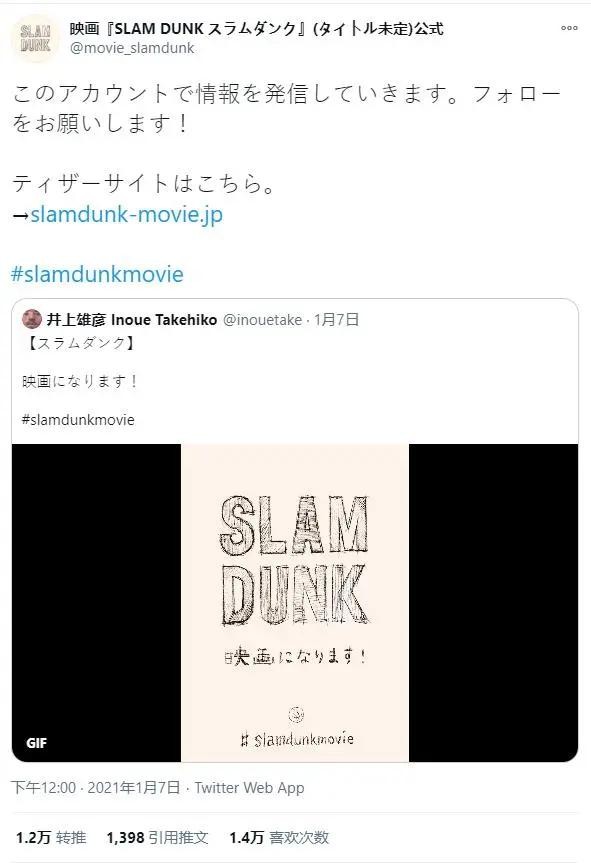 1月7日,《灌篮高手》作者井上雄彦在社交媒体上发布了一张“SLAM DUNK(即灌篮高手英文名)”的手绘动图,并附文:“这将是一部电影!”随后SLAM DUNK电影官推转发确认,将拍摄全新的动画电影,并仍由东映制作。此前,国内用户熟悉的《灌篮高手》101集TV和四部剧场版,都是出自东映之手。